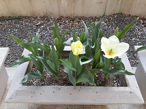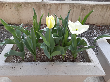 校内のチューリップがきれいに咲いて新入生を暖かく迎えています。