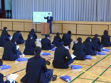 山梨県立都留興譲館高等学校 > 教育活動 > 進路講演会 2021年10月27日カテゴリー: 教育活動 進路講演会 10月20日(水)⑤・⑥校時の時間帯に、2年生の英語理数科・普通科の生徒を対象とした進路講演会を実施しました。今回は学問分野別に講師の方をお招きし、生徒の進路志望分野に関する理解を深める機会としました。ちょうど1年後以降に受験を迎える2年生たちは各自メモを取りながら真剣な面持ちで講義に耳を傾けていました。 また、⑥校時の時間帯には体育館において、1年生の英語理数科・普通科の生徒をとした進路講演会が実施されました。2年生の分野別進路講演会で看護・医療系の講師を務められた先生の講話にどの生徒も真剣に取り組んでいました。