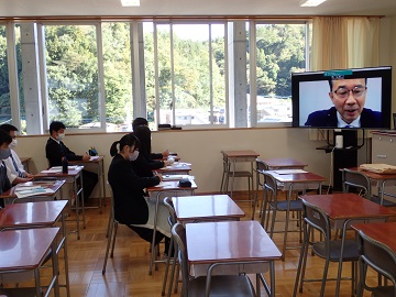 10月20日(水)⑤・⑥校時の時間帯に、2年生の英語理数科・普通科の生徒を対象とした進路講演会を実施しました。今回は学問分野別に講師の方をお招きし、生徒の進路志望分野に関する理解を深める機会としました。ちょうど1年後以降に受験を迎える2年生たちは各自メモを取りながら真剣な面持ちで講義に耳を傾けていました。