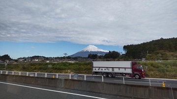 東名高速からの富士山てす。駿河湾や富士山についてバスガイドさんが説明してくれます。「ヘェ~」