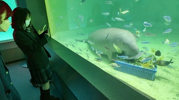 山梨県立都留興譲館高等学校 > 教育活動 > 修学旅行3日目(1) 2021年11月9日カテゴリー: 教育活動 修学旅行3日目(1) 3日目の朝。雨です。 鳥羽水族館 朝ごはんを爆食するジュゴン 鳥羽水族館を楽しみ、フェリーに乗船です! 体調不良者もなく、綺麗に晴れたお天気です。 フェリーに乗船 特別室(400円)よりデッキの様子 フェリーからの景色。空から光が差してきました。