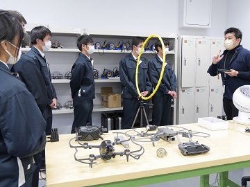 県立産業技術短期大学校電子技術科(都留キャンパス)の「ドローン実習」を、