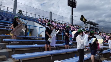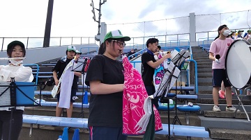 野球部が夏の大会に出場し、その野球応援を行いました。吹奏楽部にとっては3年ぶりの応援で、3学年とも野球応援を経験していません。慣れないこともあり大変でしたが、精一杯練習・演奏をさせていただきました。