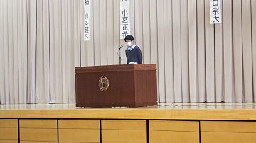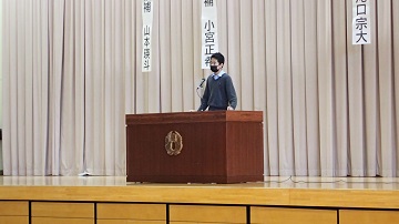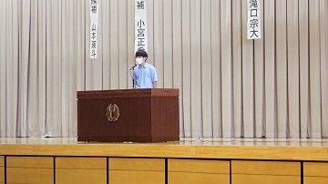 生徒会副会長 立候補責任者と候補者各2名ずつの演説の様子です。