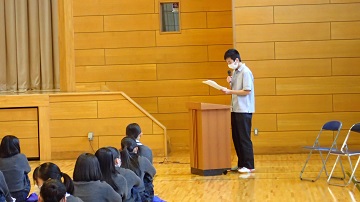 9月28日に立合演説会が1、2年生は体育館アリーナ、3年生は各教室にて行われました。