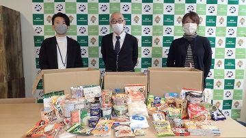 11月30日にフードドライブで保護者の皆様からいただいた食料品を、都留社会福祉協議会に預けてまいりました。今回も皆様のご協力で多くの食料品が集まりました。本当にありがとうございました。なお、写真の食料は全体の一部で、段ボールの中にまだたくさんの食料品が入っています。