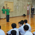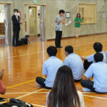 先生が琉球語で挨拶しました。生徒のみなさんは琉球語が分からなかったようですが、明日にはその言葉の意味が分かるようになってるかも!?