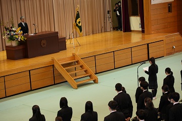山梨県立都留興譲館高等学校 > 学校行事 > 令和6年度入学式 2024年4月9日カテゴリー: 学校行事 令和6年度入学式 令和6年度入学式が本校体育館で行なわれました 生憎の天候でしたが、新入生は元気に登校しました。先生方も雨の中、誘導お疲れ様でした クラス発表、だれと一緒か… 校長先生から「入学を許可します」と入学許可 新入生宣誓 入学式・保護者合同学年集会の後は各クラスに移動して保護者合同HRを行い、 本日の日程は終了しました