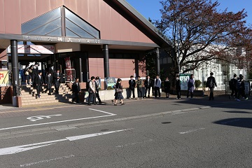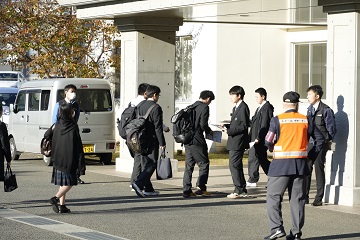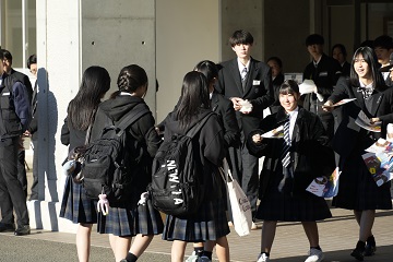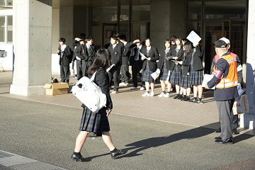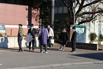 都留興譲館高校の生徒玄関前と都留文大駅前に分かれて、