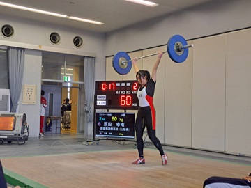 女子64キロ級 第1位 原田幸南さん スナッチ45キロ クリーン&ジャーク60キロ トータル105キロ