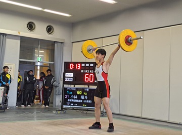 その中で、男子81キロ級 大谷夢さん(2年)がクリーン&ジャーク競技において、大会新記録を更新いたしました。また、大谷 夢さん、桑田 晃希さんは、全国標準記録を突破いたしました。