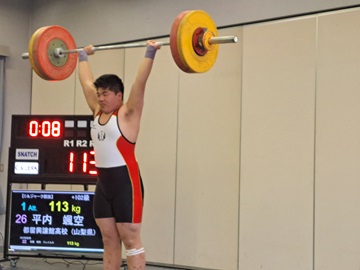 男子+102キロ級 第1位 平内颯空さん スナッチ92キロ クリーン&ジャーク120キロ トータル212キロ