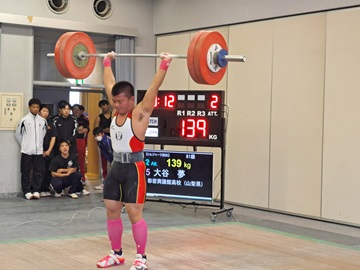 男子81キロ級 第1位 大谷 夢さん スナッチ105キロ クリーン&ジャーク139キロ トータル244キロ