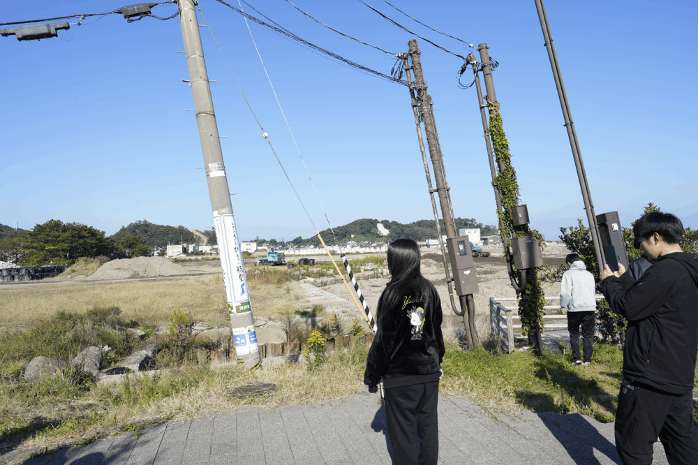 傾いてしまった校舎を輪島高校の生徒と一緒に見学し、